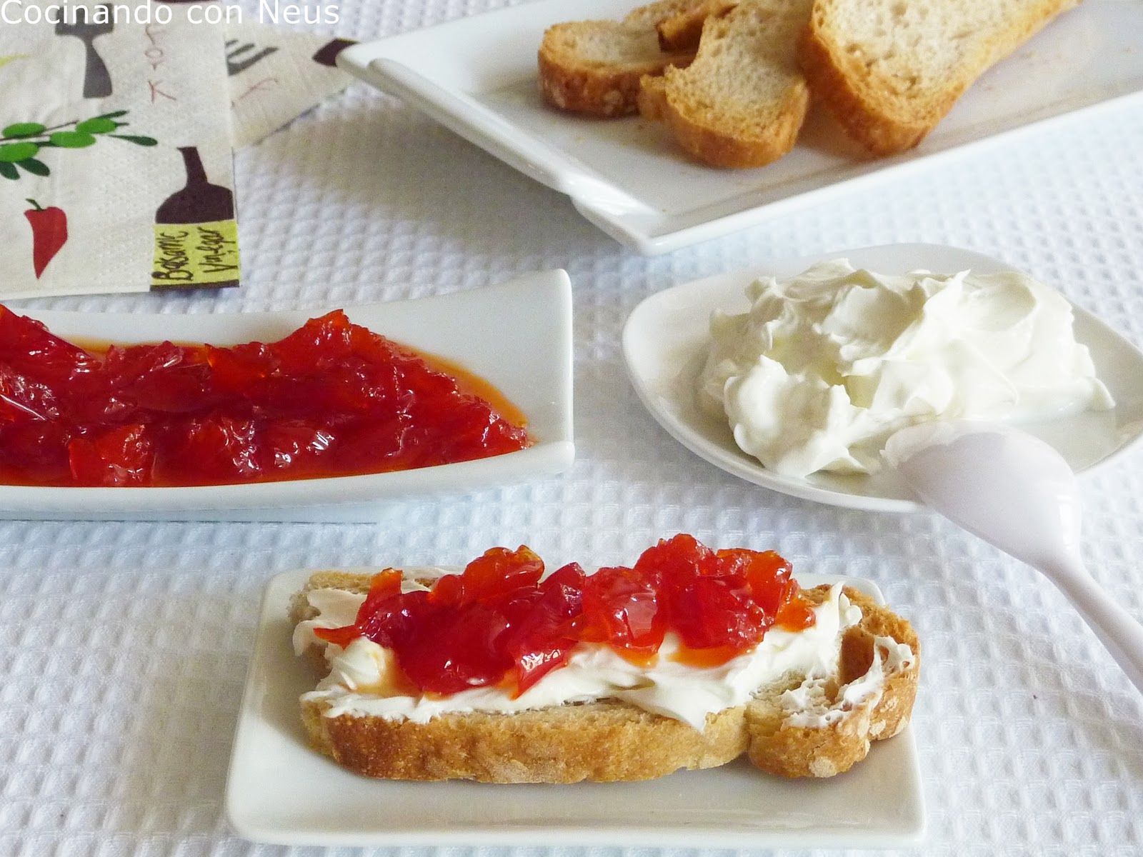 Hace mucho que no la hago, pero me encanta la mermelada de pimientos! Yo la pongo con queso de cabra, me gusta mucho el contraste. Con philadelphia suelo poner de tomate, la has probado? Que rica!