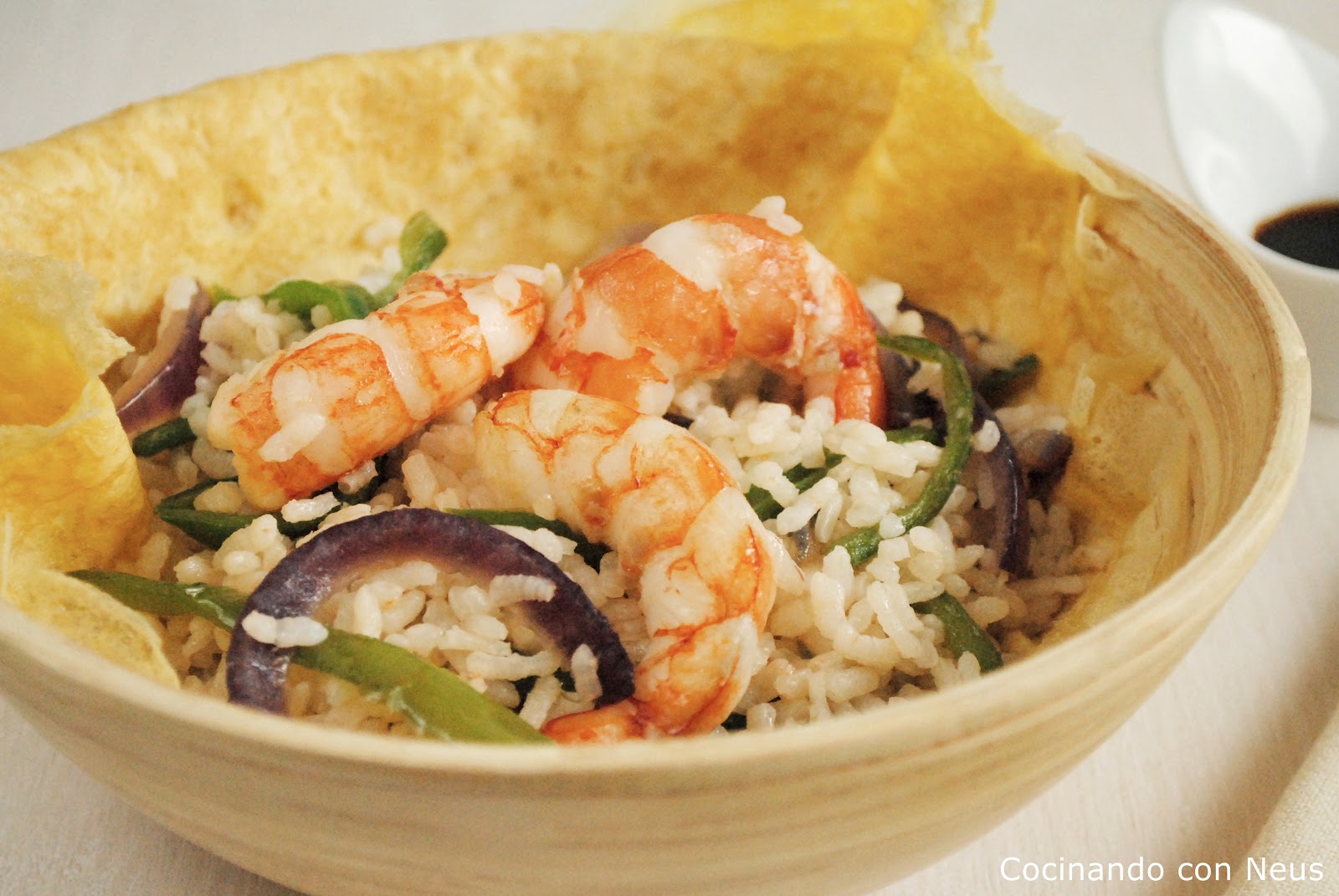 Tiene una pinta riquísima! Ne gusta la torta de huevo que utilizas para poner el arroz