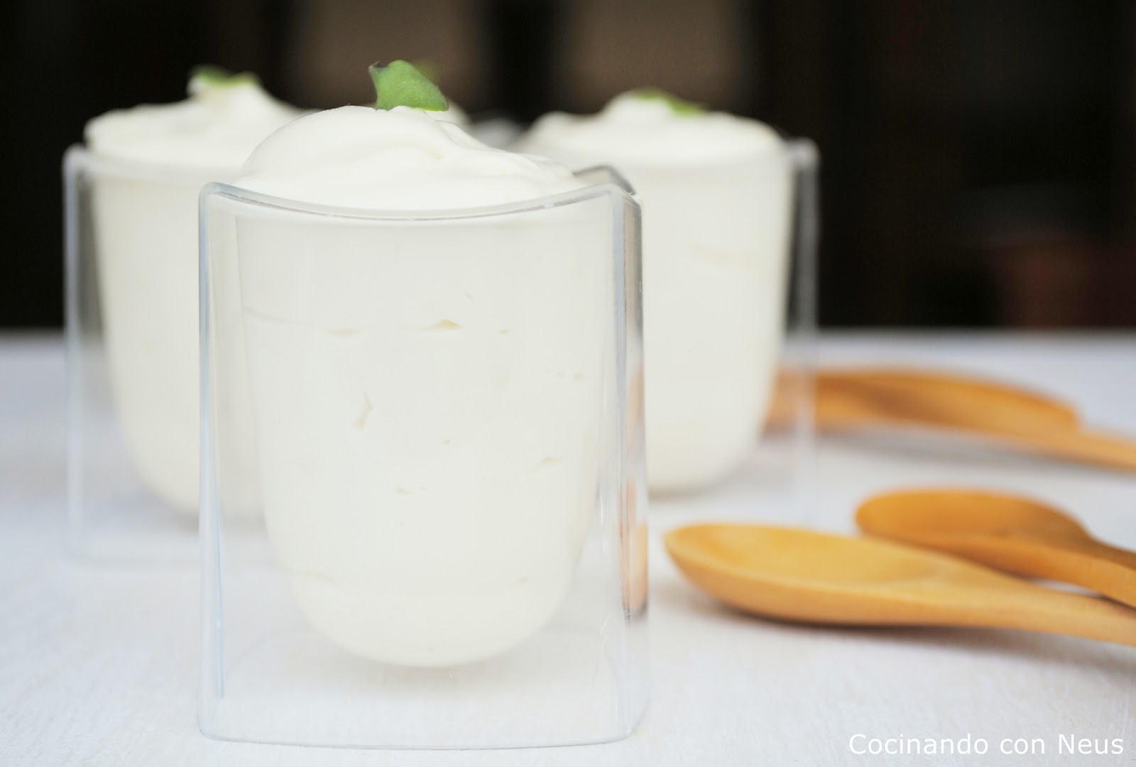 He preparado una mousse de Nigella Lawson con un ligero toque de menta… es una mousse que se puede servir en 15 minutos si la dejamos en el congelador o en un par de horas en el frigorífico ya podemos saborearla. Pero no es la típica mousse cremosa, es una mousse instantánea para saborear el mismo día.
