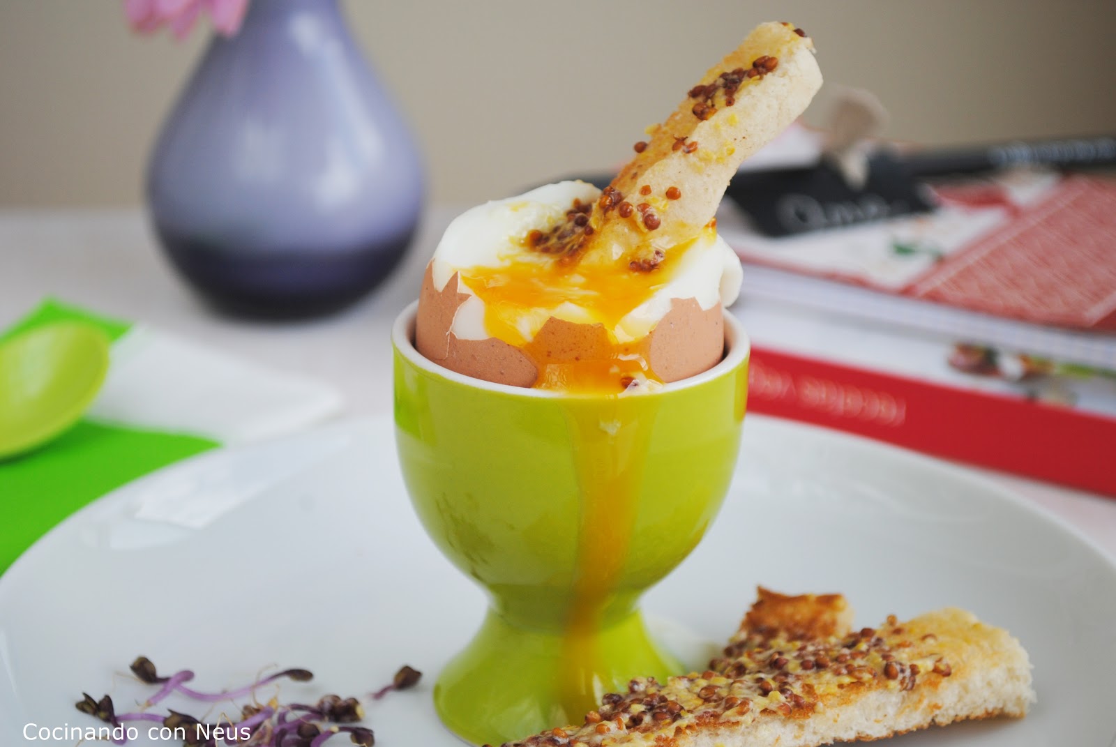 Servir el huevo acompañado con el pan y unos pequeños brotes, tipo berros o algún germinado al gusto.