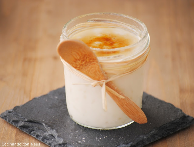 Antes de servir podemos espolvorear con canela o con azúcar glas como en mi caso quemarlo con la ayuda de un soplete de cocina. Para ello espolvoreamos una fina capa y la vamos quemando pasando el soplete por encima, ponemos otra capa fina de azúcar y repetimos la operación.