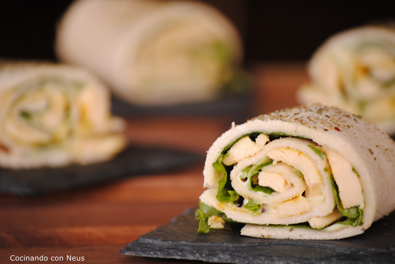 Con ese toque de curry tiene que estar delicioso. me encantan estos sandwiches enrollados para las típicas tardes de fútbol con los amigos. Tomo nota.