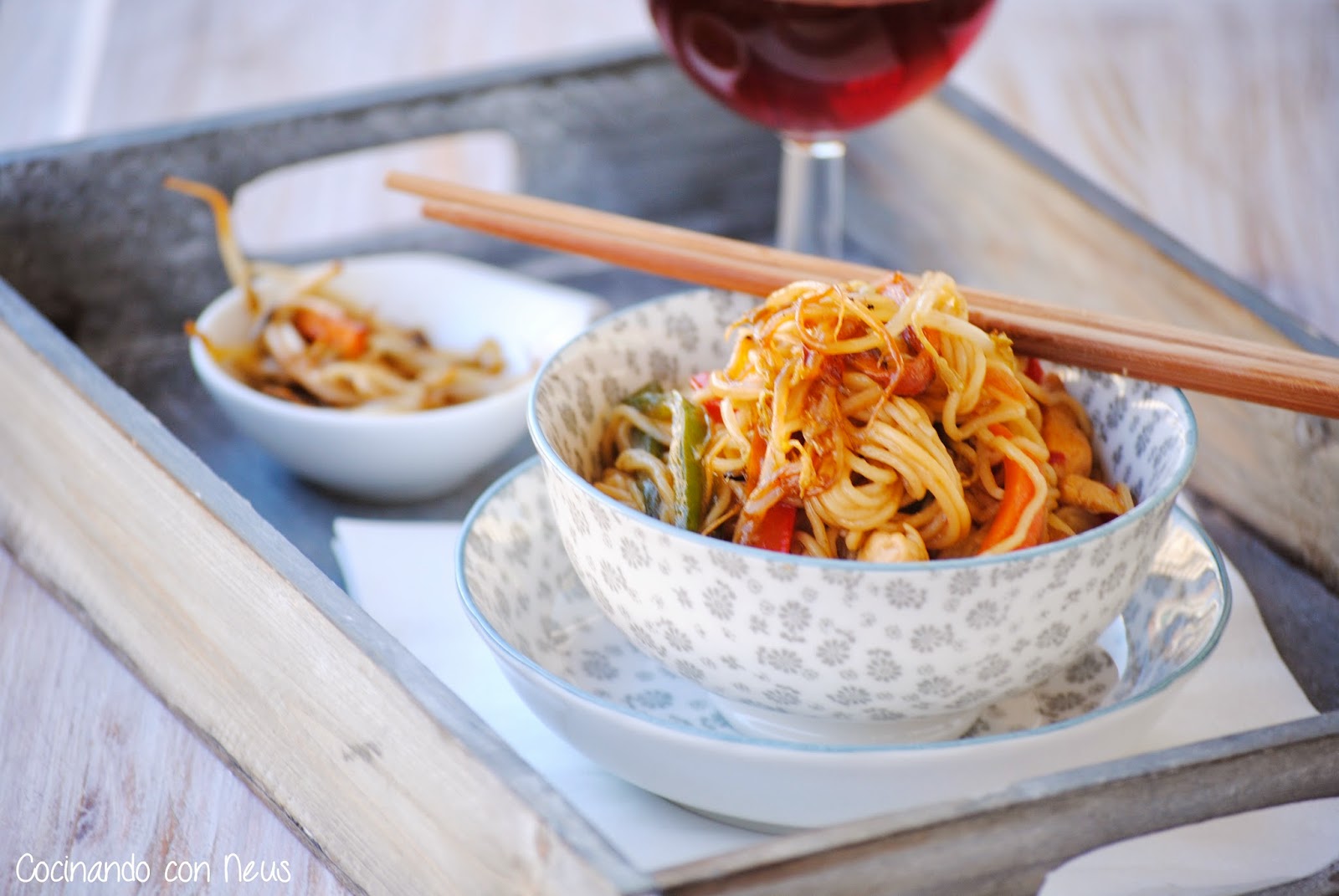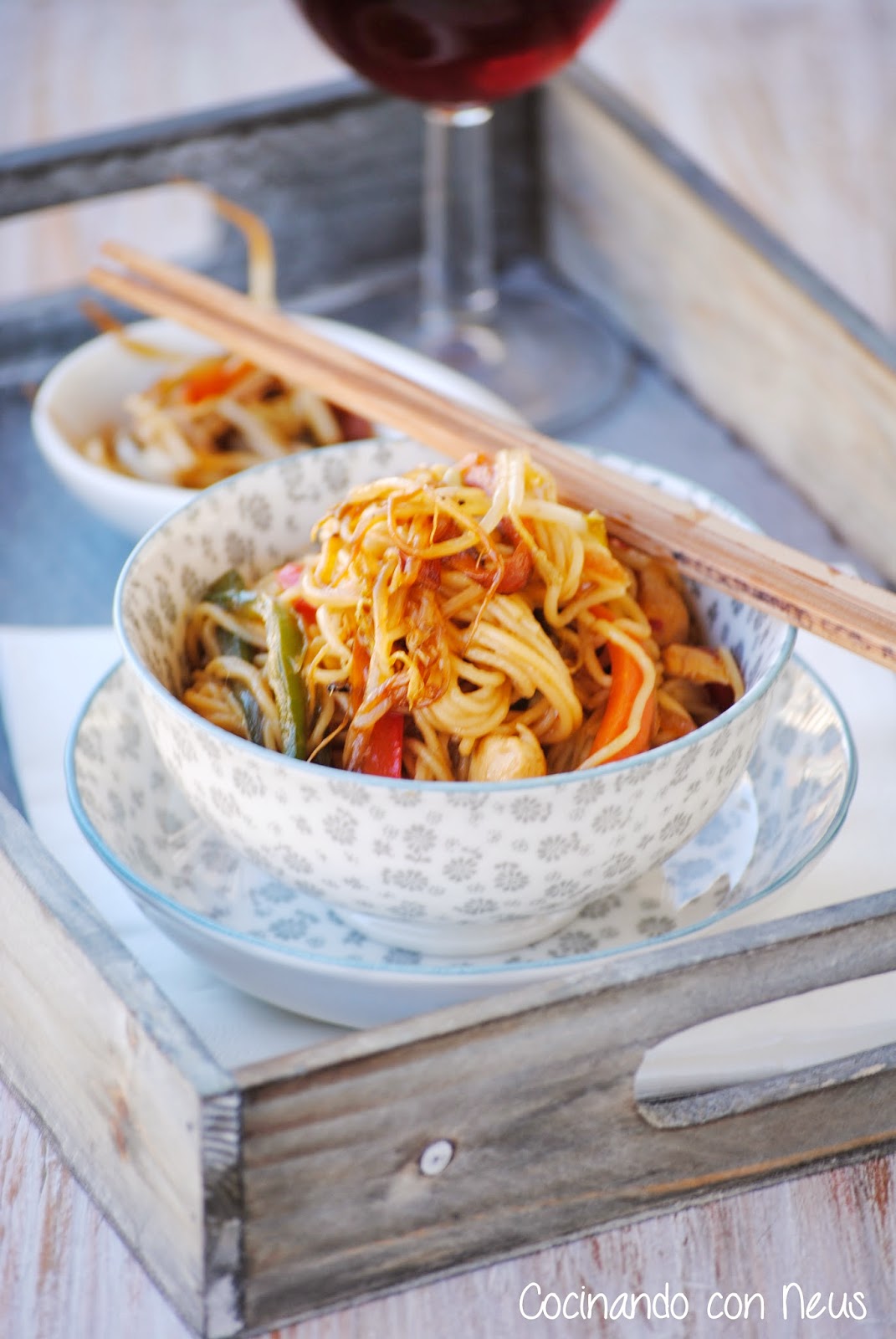 Me gustan algunos platos de la gastronomía China, el problema es que no todos los restaurantes chinos me dan confianza para ir a comer, manías?, puede ser. Últimamente mi hijo mayor cuando sale de la Universidad se compra un plato para llevar a casa de fideos y se presenta tan feliz, dispuesto a comérselos, de tercer plato, por qué primero se come lo que hay en la mesa, mientras mi hijo pequeño se lo mira con una cara de difícil definir, así que el otro día decidí hacerlos en casa para pudiera comerlos todos.