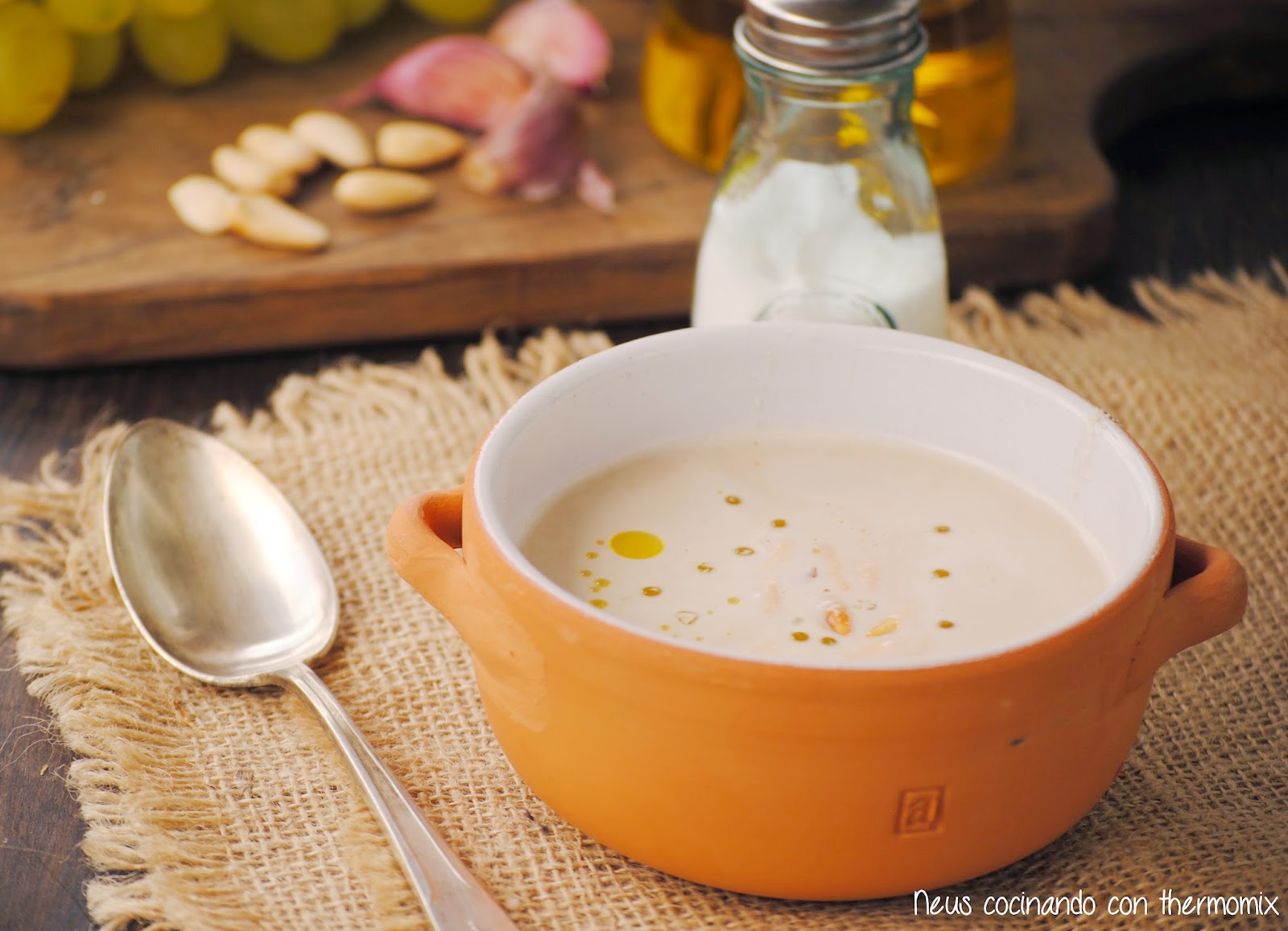 Hoy traigo un plato que hemos descubierto este verano y realmente es muy refrescante, había oído hablar mucho del ajoblanco pero nunca lo había probado hasta que se lo vi a Mª Dolores y me lance a prepararlo.