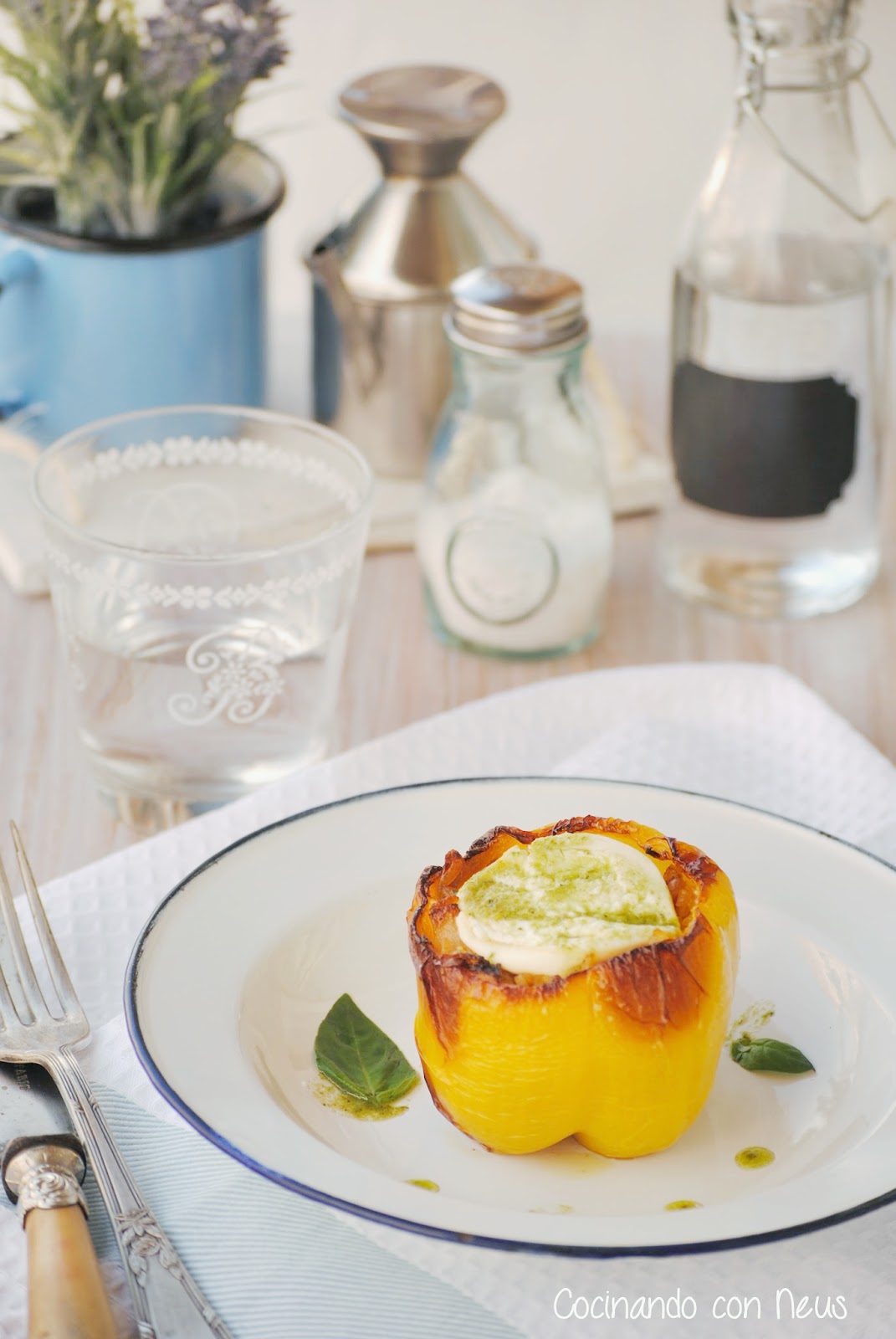 Y que buenas las recetas de este mes!!. Yo hice una vez pimientos rellenos de arroz y no me quedaron bien. Fue hace mucho cuando sabia menos de cocina jejeje. Estos tuyos se me antojan deliciosos con ese sabor del pesto y de remate ese queso encima que me ha mata o!! ¡¡¡que bueno!!! :)))