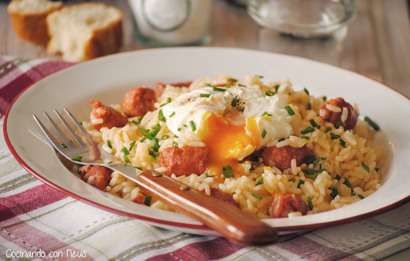 Arroz salteado con chistorra y huevo poché-cocinando-con-neus