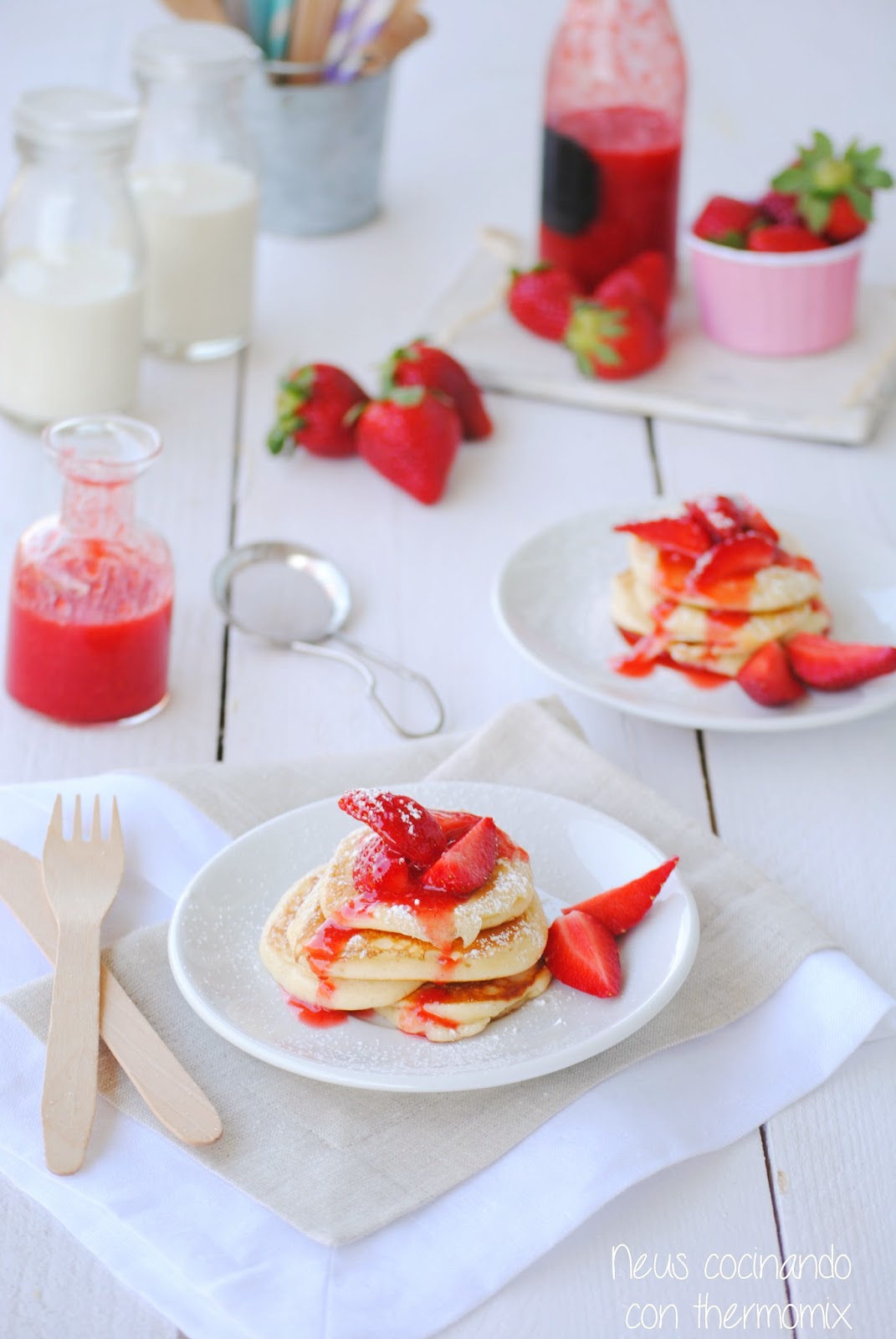 la combinación de esos pancakes con la salsa de fresa tiene que ser sublime, yo me comía ahora 2 o 3…