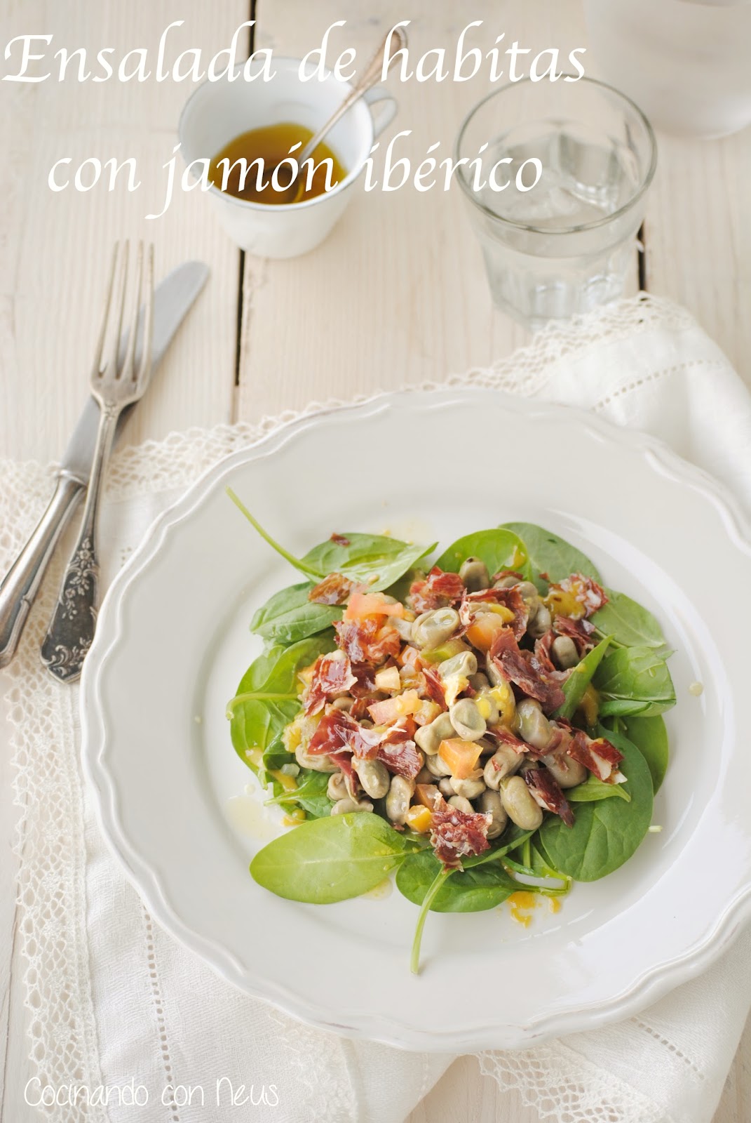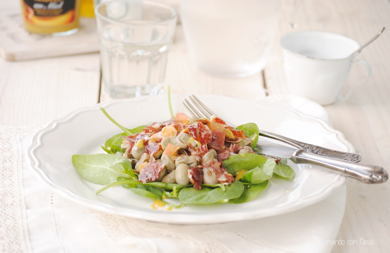 Esta es mi primera aportación: una ensalada fresca con el sabor intenso del jamón ibérico aliñada con mostaza a la miel.