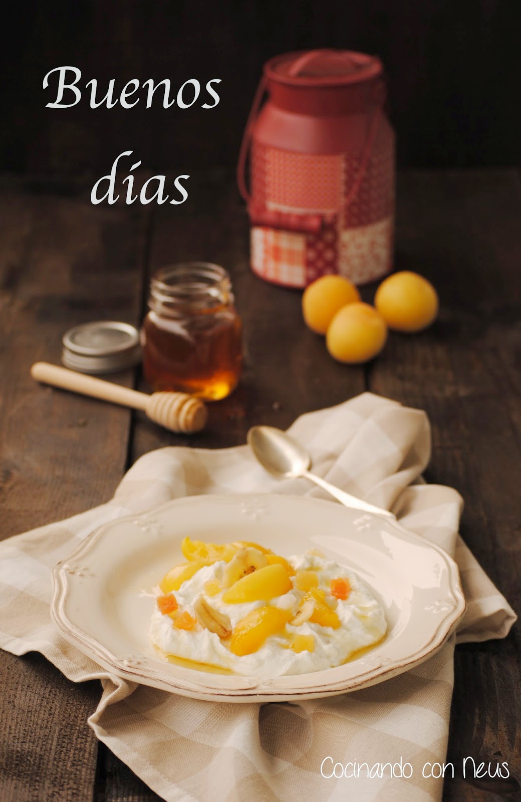 Hola Neus, este año nuestro albaricoquero se ha sentido generoso y hemos comido y regalado unos albaricoques dulces y ricos. Para variar, busque en la red un postre y me detuve aquí. Hoy es justo que te diga que nos gustó mucho, aunque nos lo tomamos de postre y no en el desayuno.