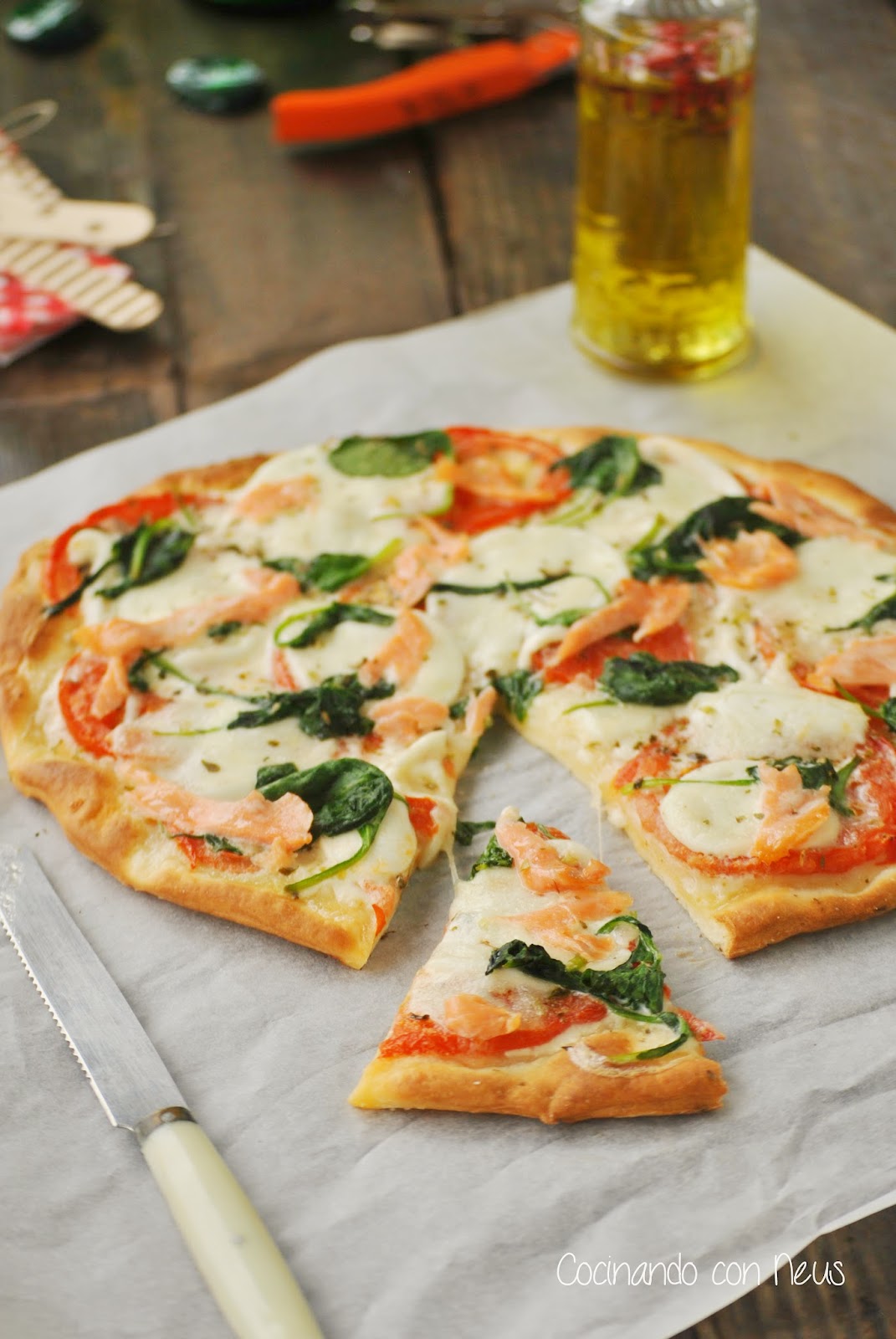Nunca he hecho pizza con salmón pero la de espinacas me gusta mucho, habrá que probarla.