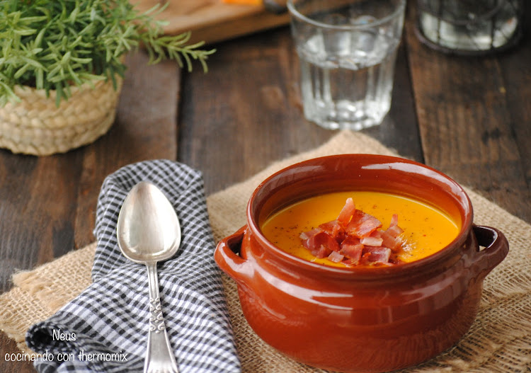 La culpable de que me volviera adicta a la calabaza es Donna Hay, un día la vi en el Canal Cocina cocinando esta crema de calabaza y al ver la calabaza caramelizada me apeteció muchísimo.Y desde entonces siempre preparo esta crema.