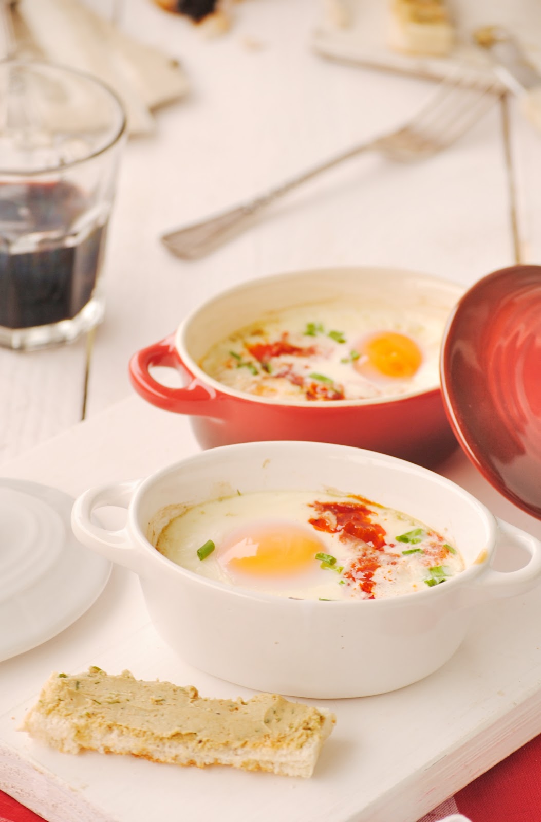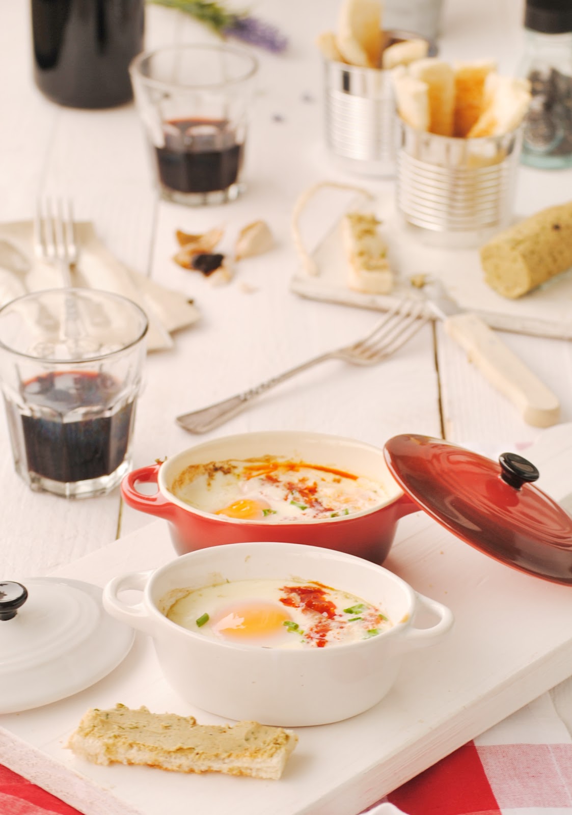 Y sobre tus huevos, los que van en cocotte (ji ji ji) decirte que me han encantado. Esa sensación de impregnar la tostada con mantequilla de ajo en el huevo, cremosito, y llevarte la sobrasada junto con él es … ¡un escándalo! ¿O no? Estupenda idea que ya me apunto con tinta de sobrasada en mi lista de recetas para la cena. Mis comensales te agradecerán la idea 😉