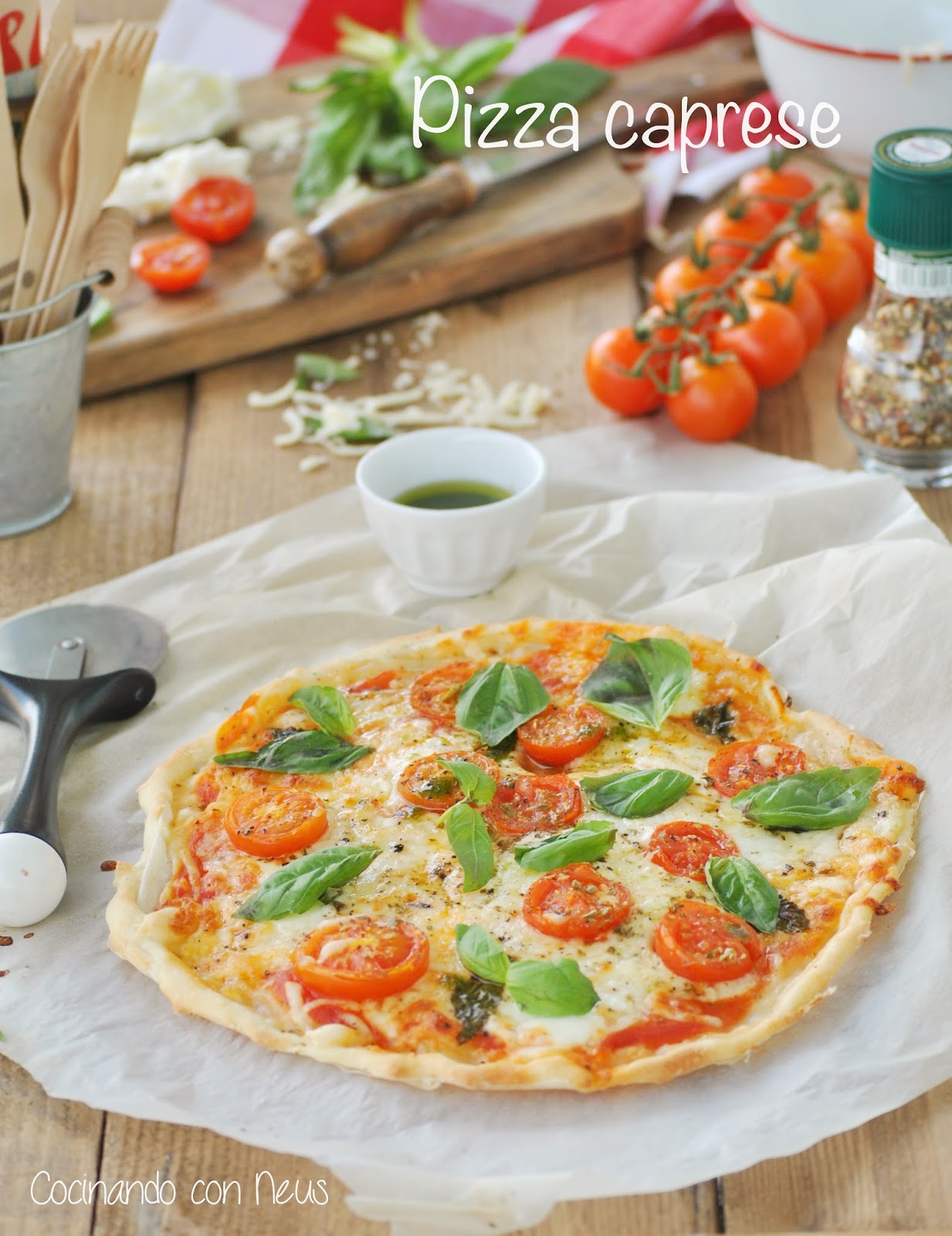Tomate, mozzarella y albahaca, 3 ingredientes que juntos reciben el nombre de Caprese. Si en ensalada ya se convierten en un plato de lujo, en pizza es simplemente espectacular, sencilla y sabrosa ha pasado ha formar parte de las pizzas favoritas en mi casa.