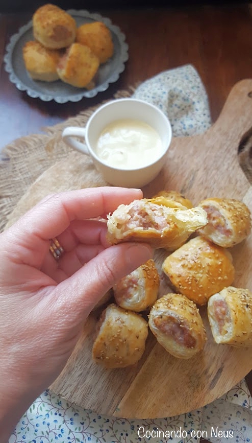 Mmmm que buena pinta!!! Cuando leí Rollitos de salchichas, pensaba en una salchicha de esas industriales envuelta de hojaldre…, pero no!!!