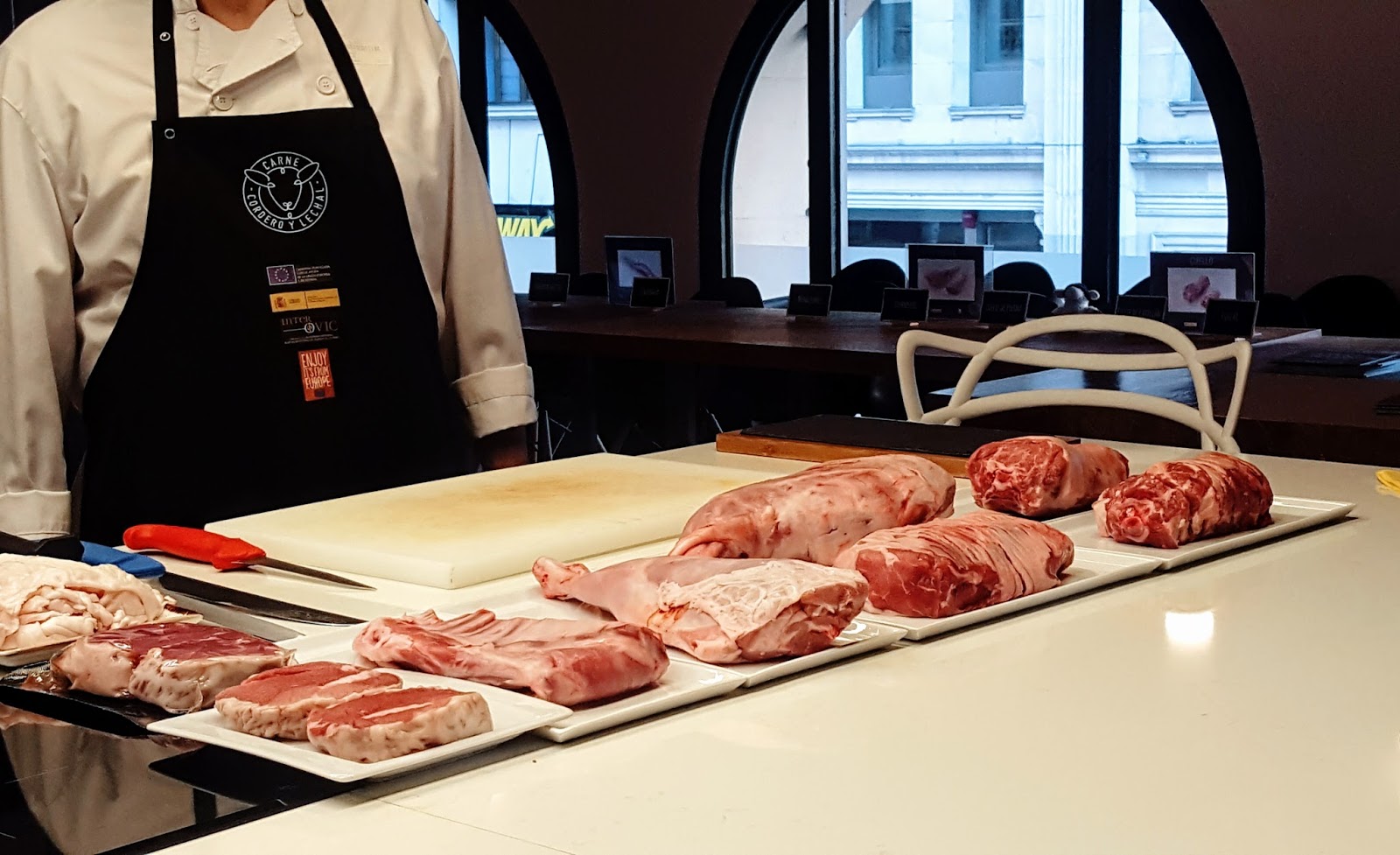 La demostración de los cortes fue a cargo del carnicero Goyo, mientras que Javier Robles se encargó de explicarnos con mucho dinamismo y pasión el motivo de la campaña además de las diferencias existentes entre el Cordero Lechal, Recental y Pascual.