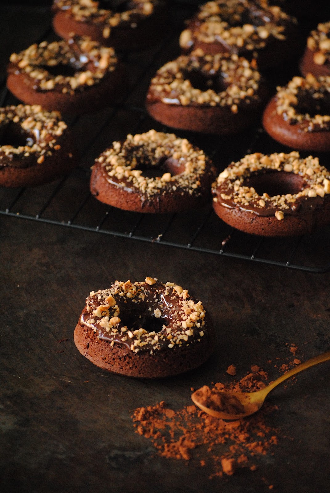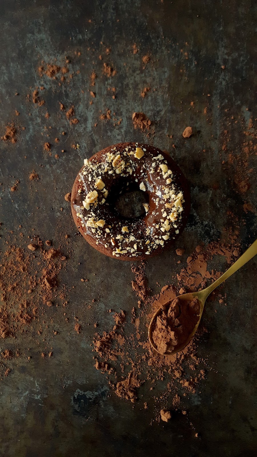 Una vez fríos, derretimos el chocolate de la cobertura, cubrimos la superficie del donut con la ayuda de una cuchara y espolvoreamos las avellanas.