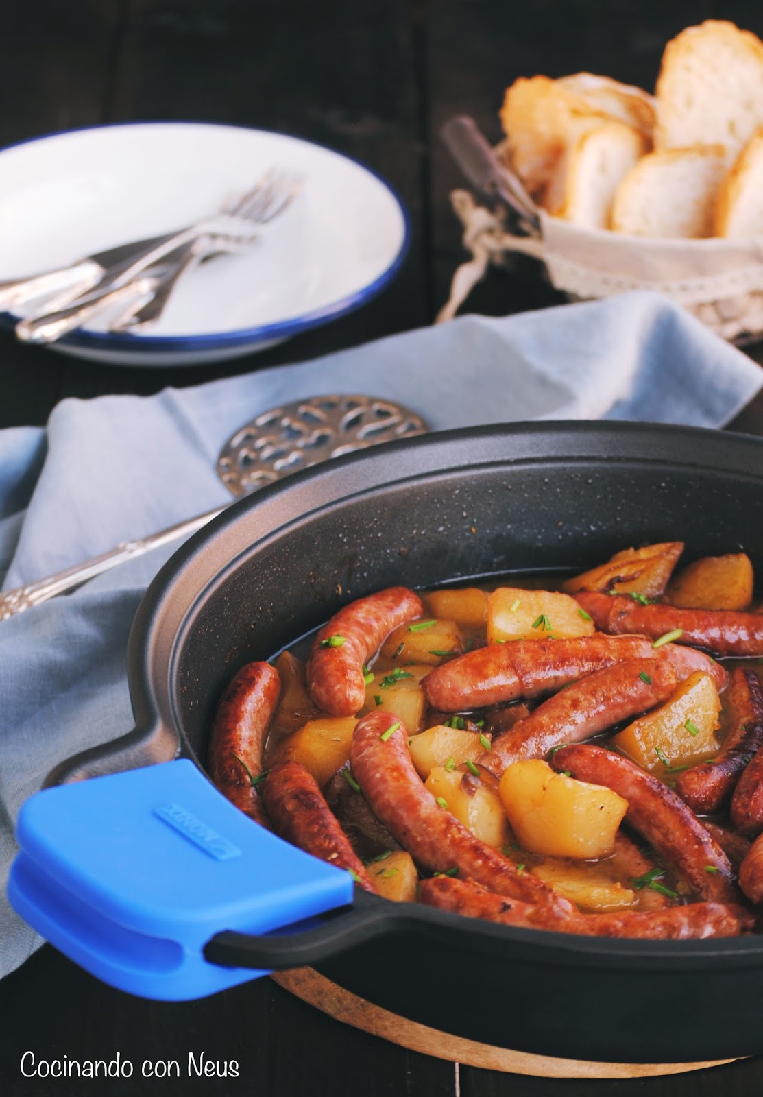 Incorporamos las salchichas nuevamente a la cazuela.