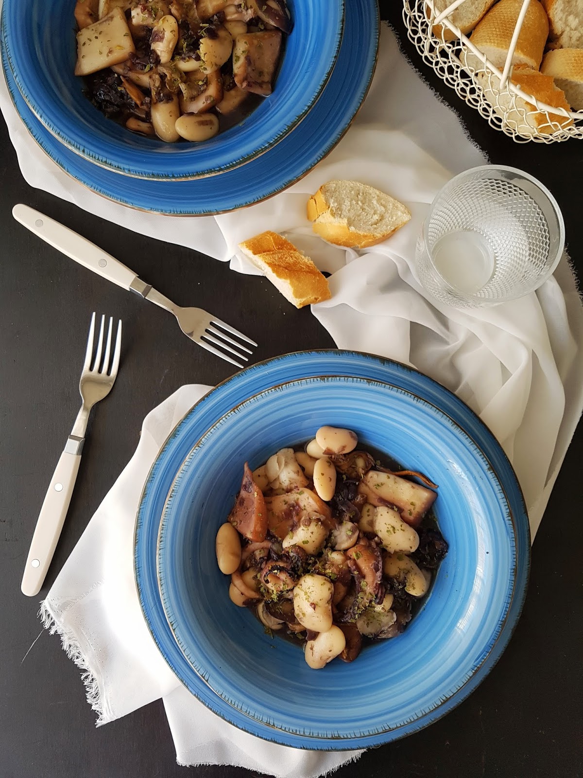 Esta sepia ha quedado súper tierna y sabrosa, y se prepara en menos de 15 minutos y presentada en estos platos ha sido una comida de lujo.¿ A qué es bonita esta vajilla de gres azul? Es un regalazo de Ohgar, regalos que molan y más para estas fechas, que se convierten en unos Reyes Magos anticipados.