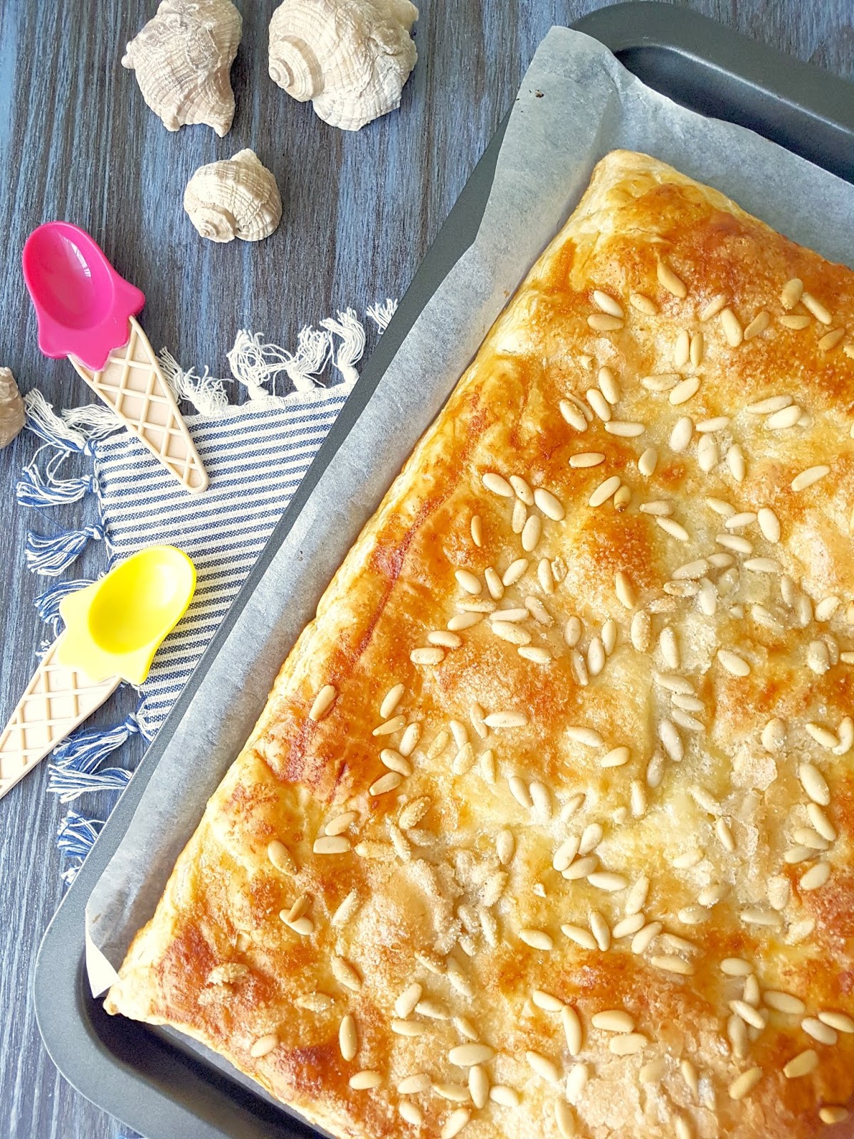 Este año os traigo la coca de Llavaneres, una coca de hojaldre rellena de crema pastelera, muy fácil de hacer.