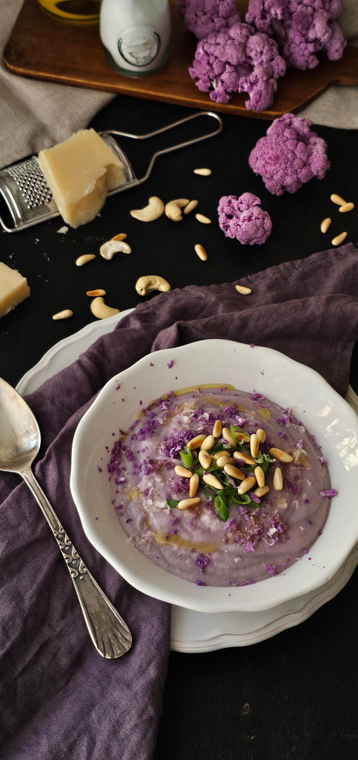 Pero la coliflor morada no solo aporta ese tono precioso: también está cargada de antocianinas, un pigmento vegetal que se ha relacionado con la reducción del riesgo de enfermedades cardiovasculares. Las antocianinas tienen propiedades antioxidantes y antiinflamatorias, lo que las convierte en un ingrediente valioso para cualquier dieta saludable.