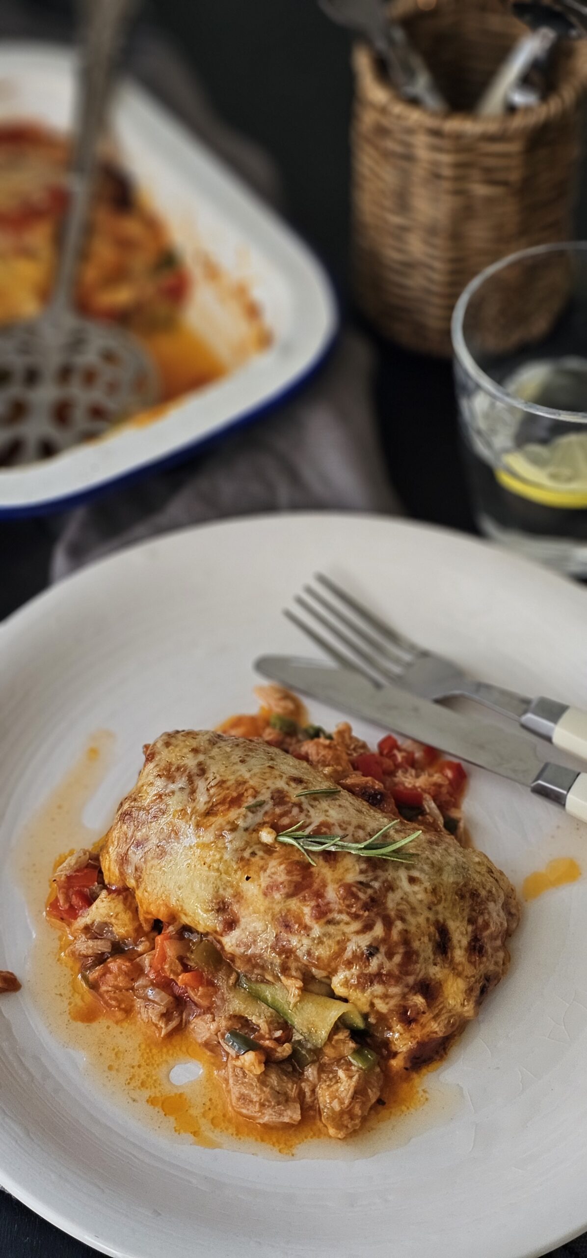 A diferencia de las lasañas tradicionales, esta propuesta utiliza láminas de calabacín en lugar de pasta, lo cual la hace mucho más ligera, pero sin renunciar a la jugosidad ni al sabor. Por otro lado, el relleno de verduras y atún aporta matices suaves y muy mediterráneos que combinan genial con la capa de queso fundido final.